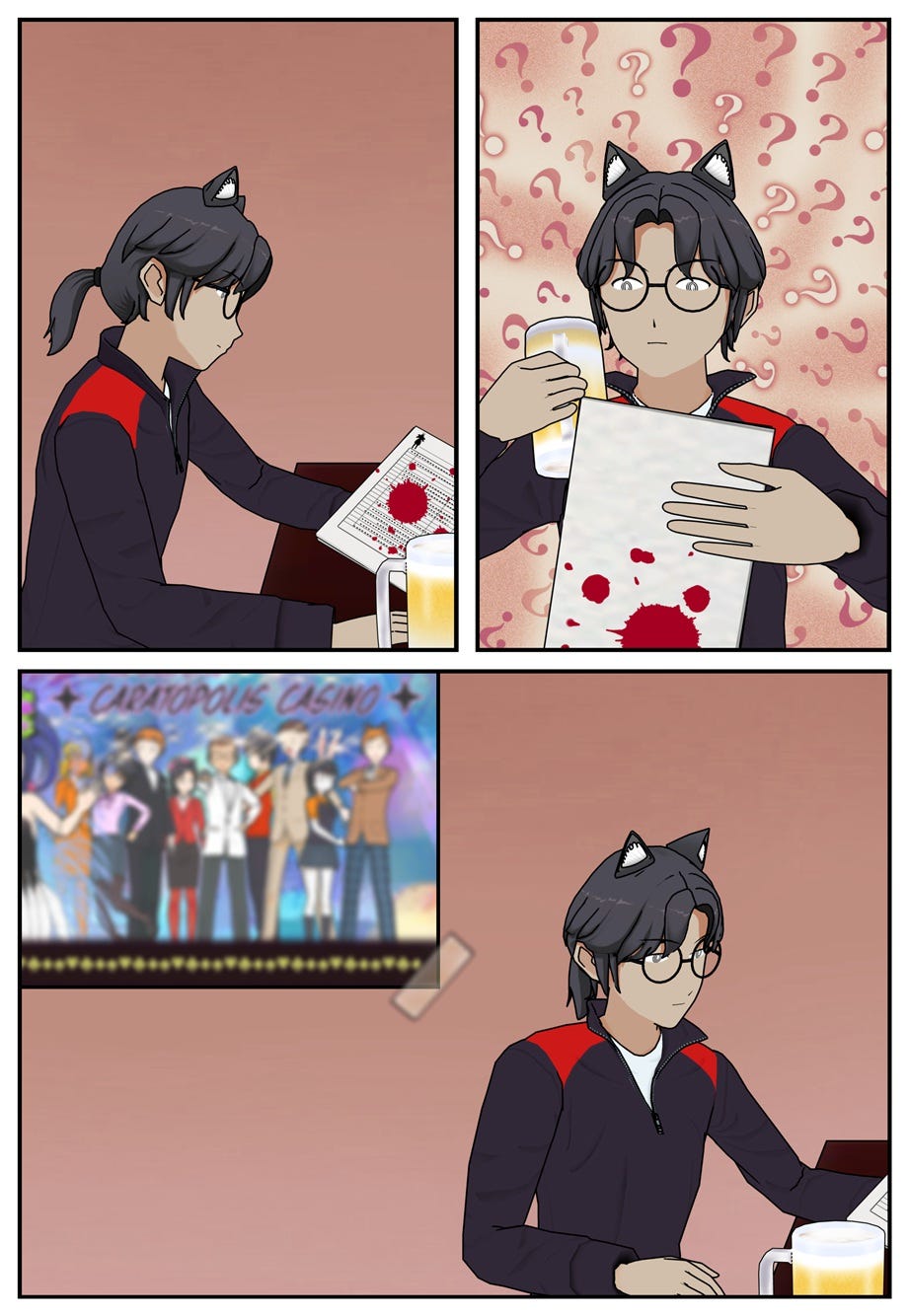ComicChapter 009 (3/3)It's All In the MindSnow MartingaleJun 18, 2025511ShareRuff is alone again in Cloverville — what’s next? Meanwhile, Vana’s strange contact forces Ace to listen to things he doesn’t want to hear…←← Start From Beginning← See Previous — Chapter 009 (2/3)See Next — Chapter 010 (1/3) →SubscribeShare
