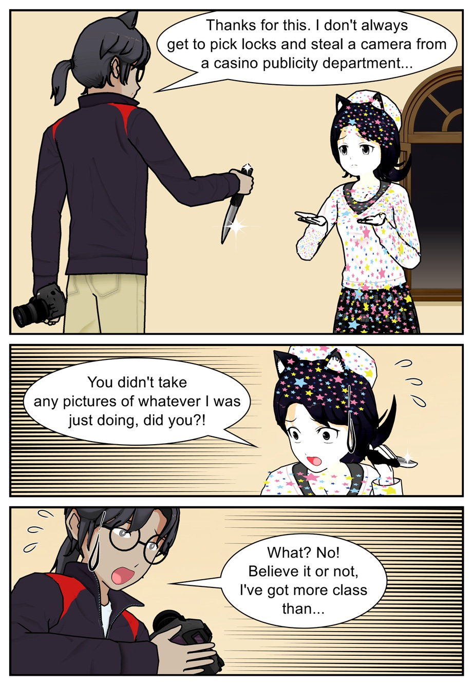 Meanwhile, Ruff Shuffle and Rae Misere end up at Caratopolis Casino for their own investigations. Rae goes to meet Avarus Mammony alone at his private lounge. When she denounces his plans, he poisons her and leaves her for dead…